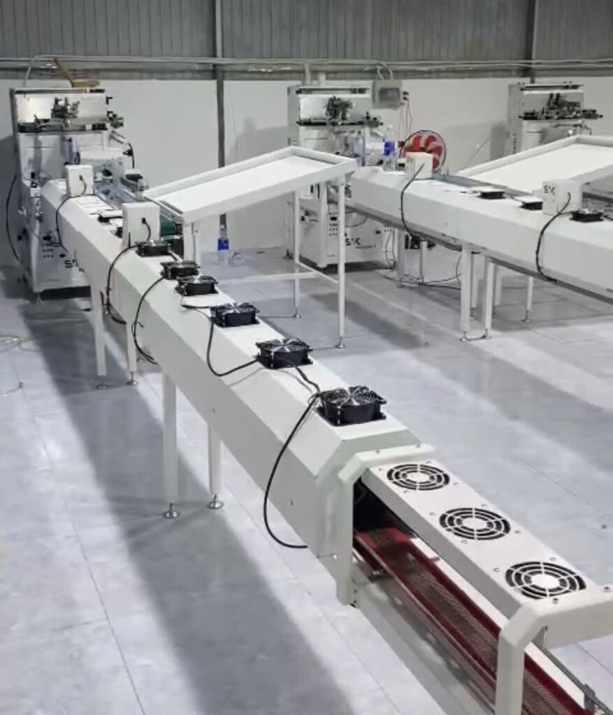 Sau khi in xong, ly sẽ được đưa sang khoang sấy. Đây là bộ phận không thể thiếu trong hệ thống in ly tự động. Khoang sấy giúp mực khô nhanh, giảm mùi mực và mùi dung môi sau in, đảm bảo ly đạt trạng thái ổn định trước khi ra thành phẩm.